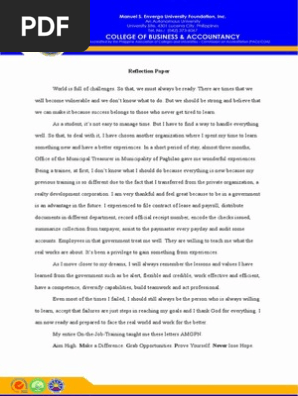 Self reflection reflection paper for ojt. Maybe you would like to learn more about one of these? We did not find results for: Check spelling or type a new query.